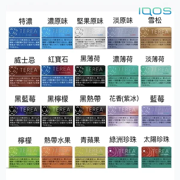日本市場的Terea煙彈提供了豐富的口味選擇,截至2024年,產品線已擴展至24種口味。部分熱門口味包括: